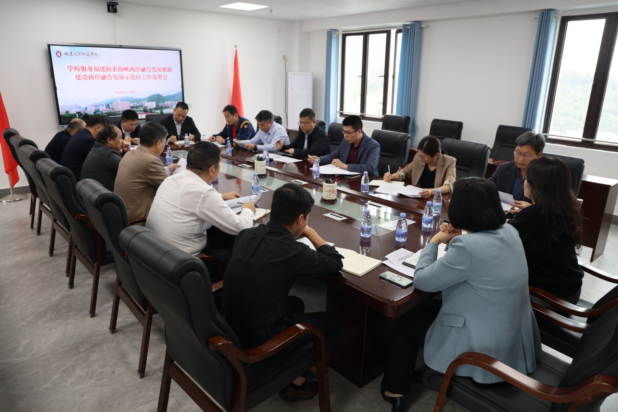 为深入贯彻党的二十大精神和习近平总书记关于对台工作的重要论述,贯彻省委十一届五次全会精神,落实《中共中央 国务院关于支持福建探索海峡两岸融合发展新路建设两岸融合发展示范区的意见》及省委、省政府的实施意见,更好服务福建建设两岸融合发展示范区,3月28日下午,学校在五马山校区林联兴科技楼第一会议室召开服务工作部署会。副校长姜兴山主持会议并作工作部署。发展规划处、台港澳事务办公室及各二级学院党政负责人参加了会议。