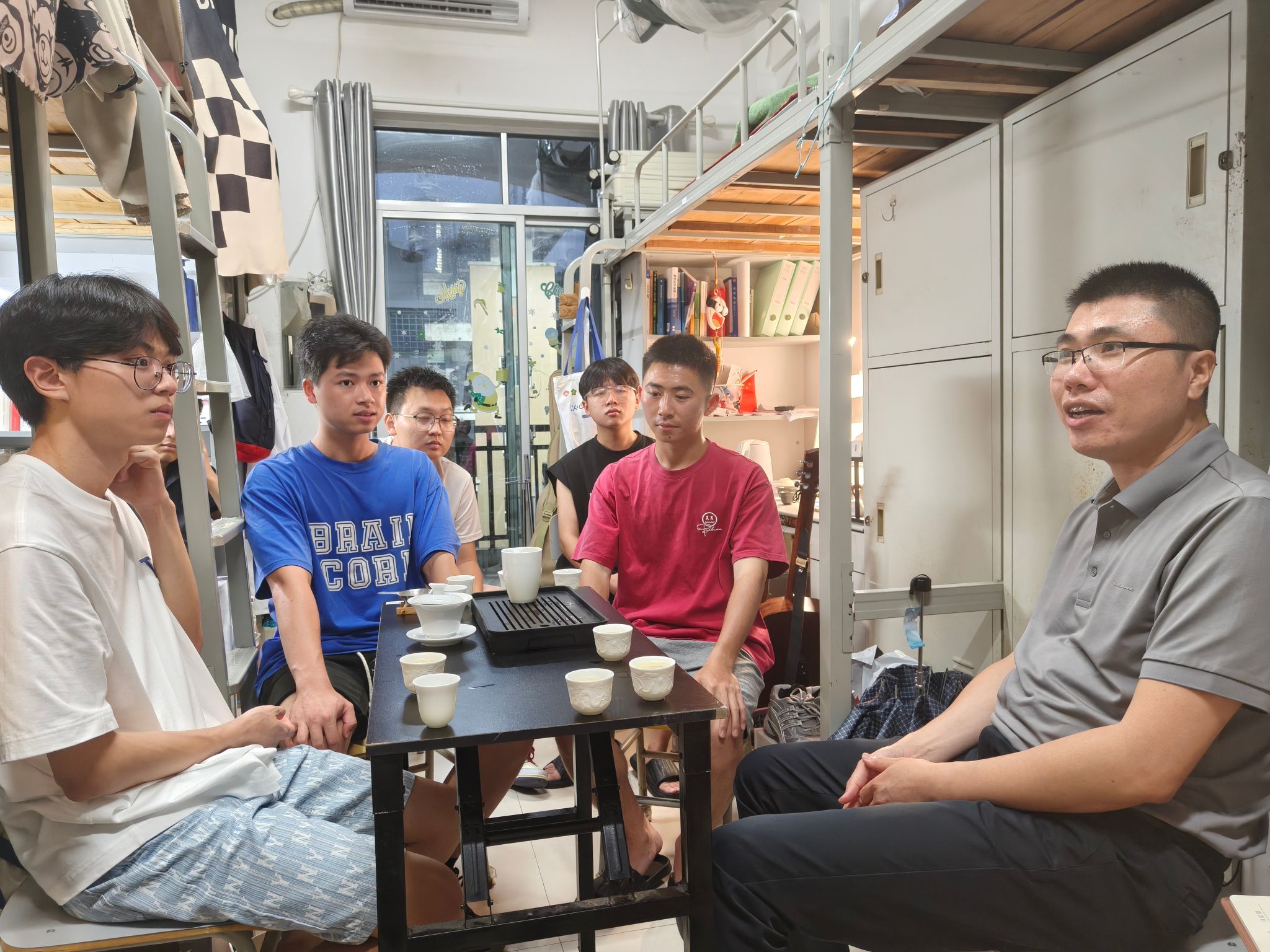 “期末复习进度如何?”“学习生活有没有困难?”“大学期间有什么规划?”“未来是打算考研还是就业?”“对学校发展有何意见建议?”……支部党员教师暖心关怀的话语拉近了师生距离,同学们也纷纷敞开心扉。在与同学们面对面交流中,党支部书记念潮旭详细询问了同学们的课程学习进度、参与学科技能竞赛和职业生涯规划等方面的情况,勉励同学们坚定理想,珍惜时光,向上向善,始终保持良好的学习状态,学好专业知识、练好专业技能。同时,鼓励同学们积极为学校的建设和发展建言献策,认真倾听同学们对学校完善公共设施、改进校园服务、加强竞赛管理等方面的意见和建议,耐心解答同学们的每一个问题,并表示会将同学们关心的问题反馈给学校有关部门,共同为同学们创造更好的学习、生活环境和条件。